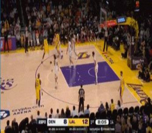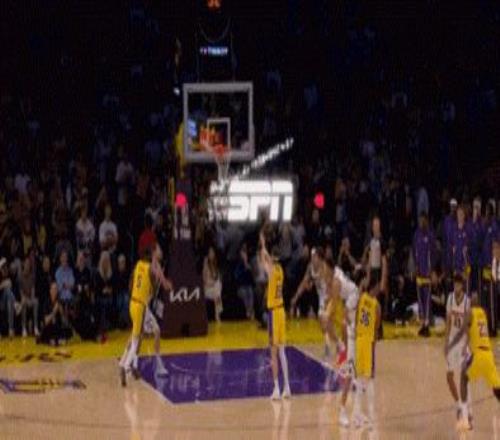 这边一投丢,那边快速上球,被湖人反攻