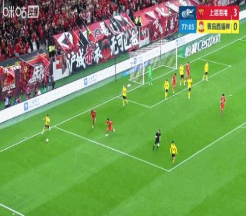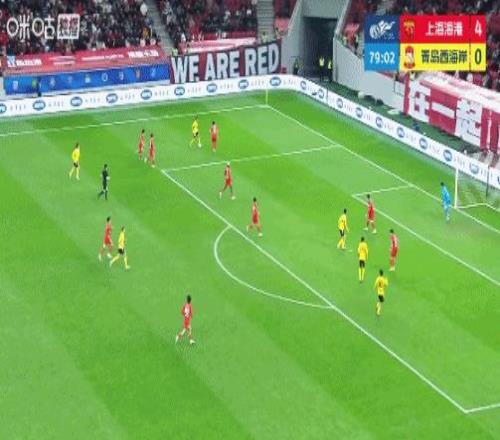 青岛西海岸打入挽回颜面的一个进球。